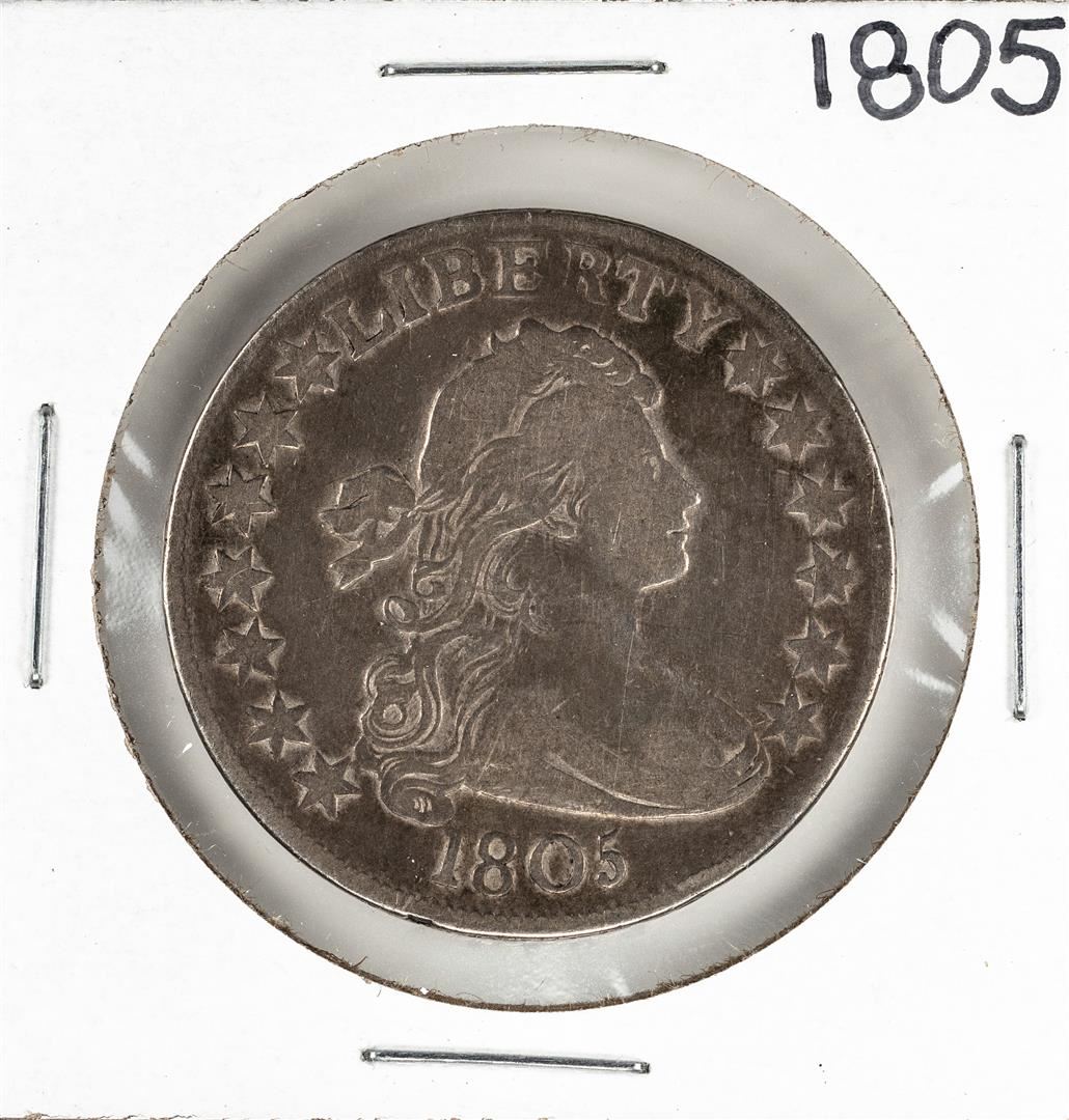 One 1805 Draped Bust Half Dollar Coin.