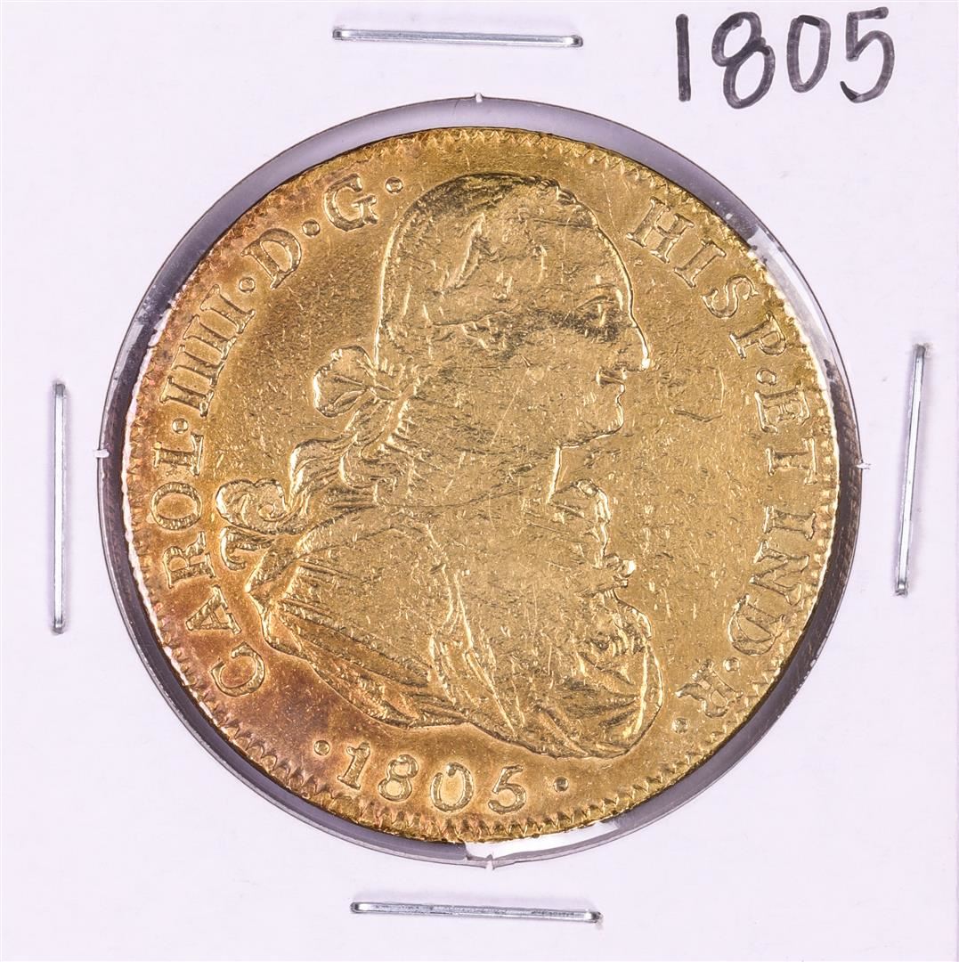 One 1805 Mexico Charles IV 8 Escudos Gold Coin.