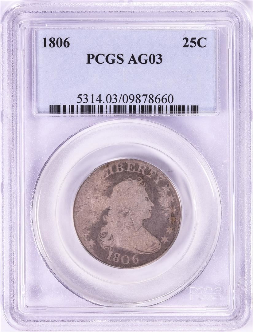 One 1806 Draped Bust Quarter Coin PCGS AG03. PCGS Graded.
