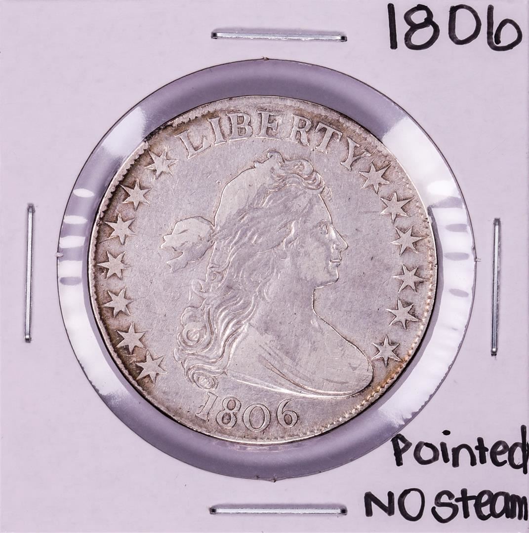One 1806 Pointed 6 No Stem Draped Bust Half Dollar Coin.