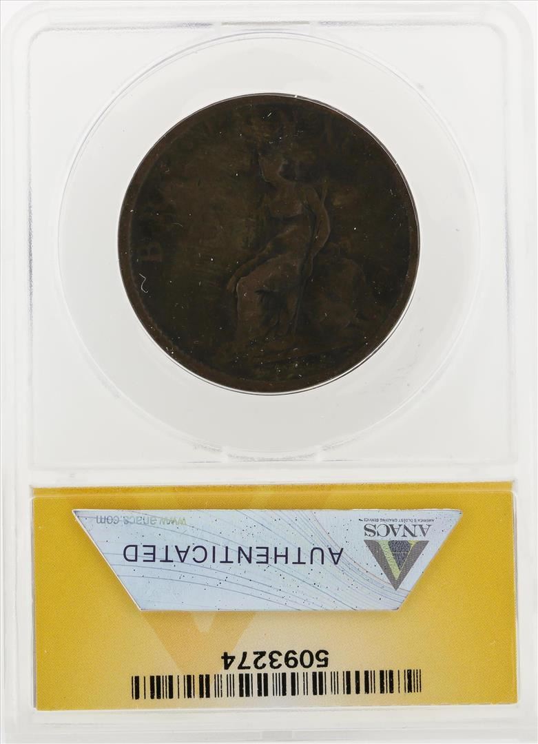 One 1807 1 Penny Great Britain Damaged Coin ANACS VG8 Details. ANACS Certified.