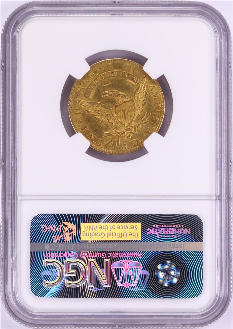 One 1807 $5 Capped Bust Half Eagle Gold Coin NGC AU55 BD-8. NGC Certified.