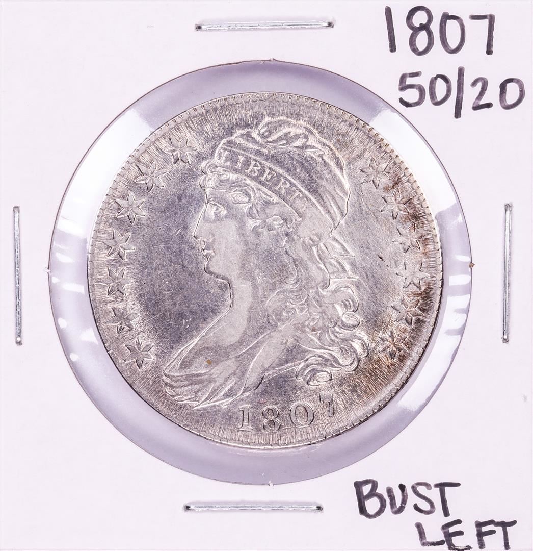 One 1807 50/20 Capped Bust Left Half Dollar Coin.