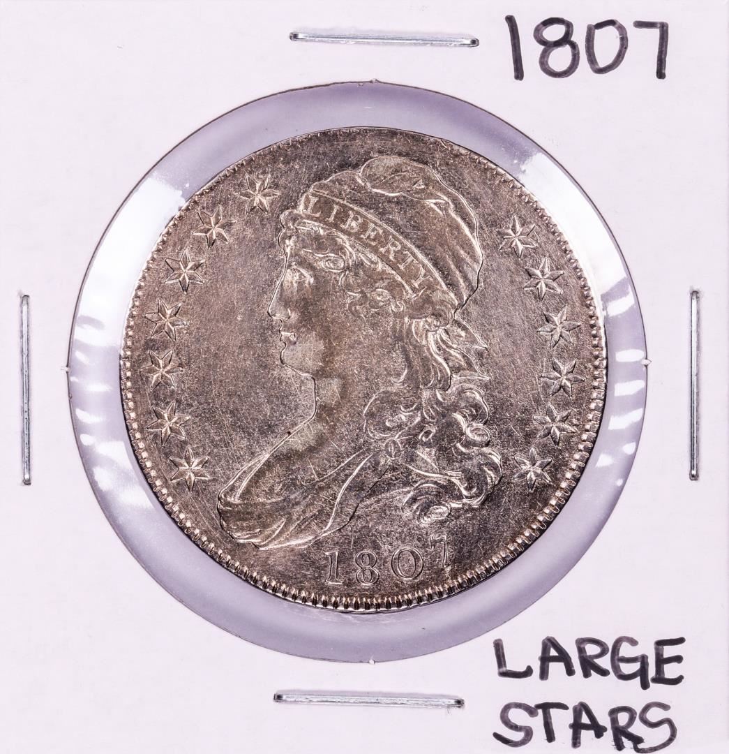 One 1807 Large Stars Capped Bust Left Half Dollar Coin.