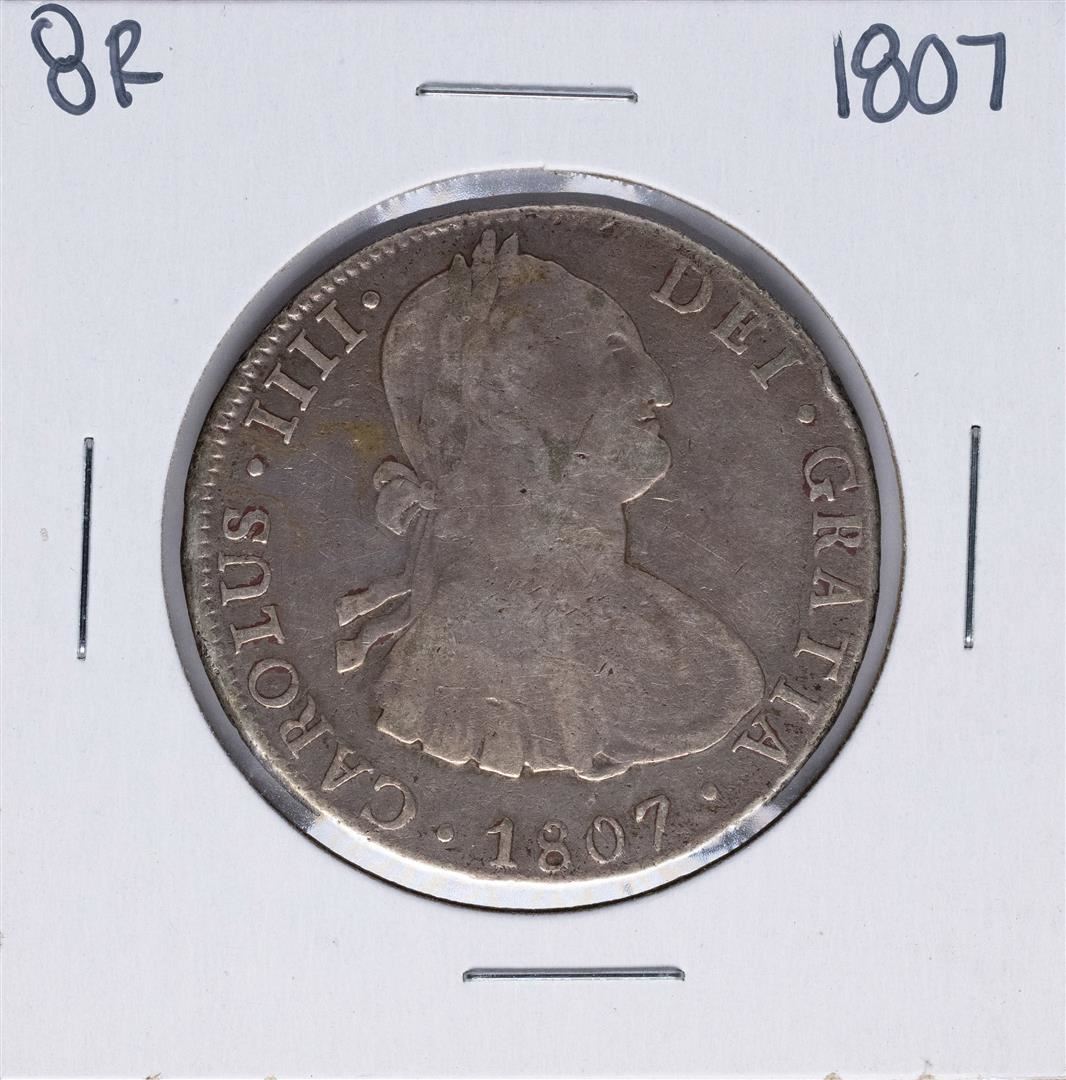 One 1807-PJ Bolivia 8 Reales Carolus IIII Silver Coin .
