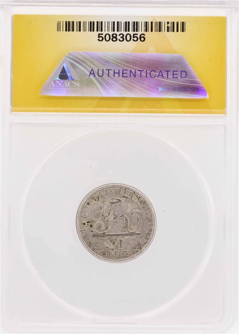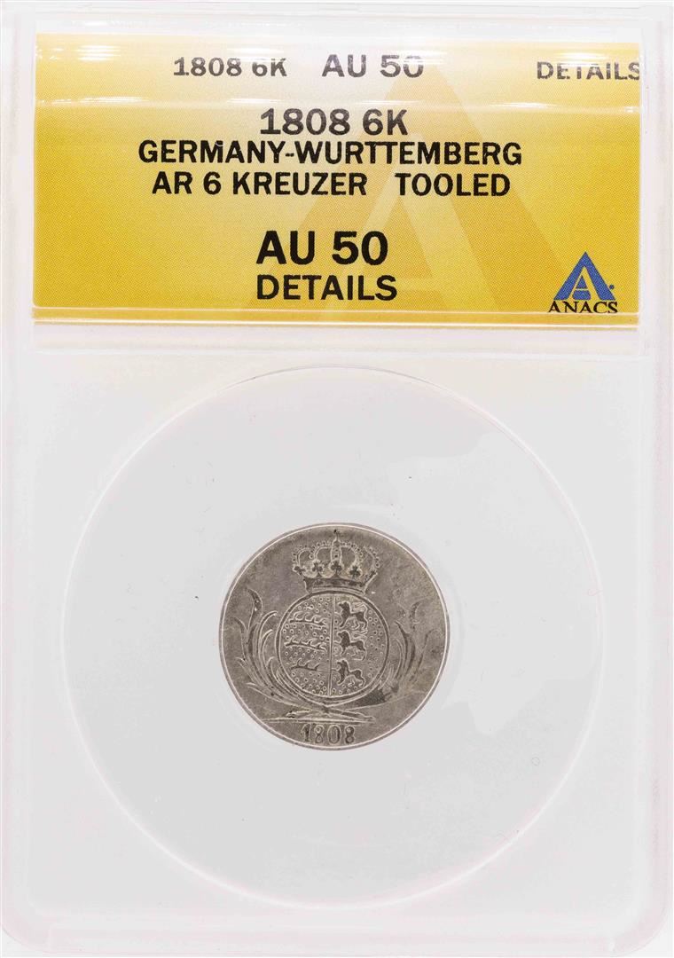 One 1808 Germany-Wurttemberg AR 6 Kreuzer Coin ANACS AU Details. ANACS Certified.