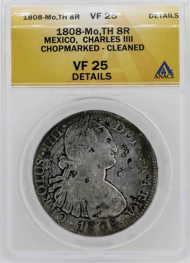 One 1808-Mo Mexico Charles IIII 8 Reales Coin ANACS VF25 Details. ANACS Certified.