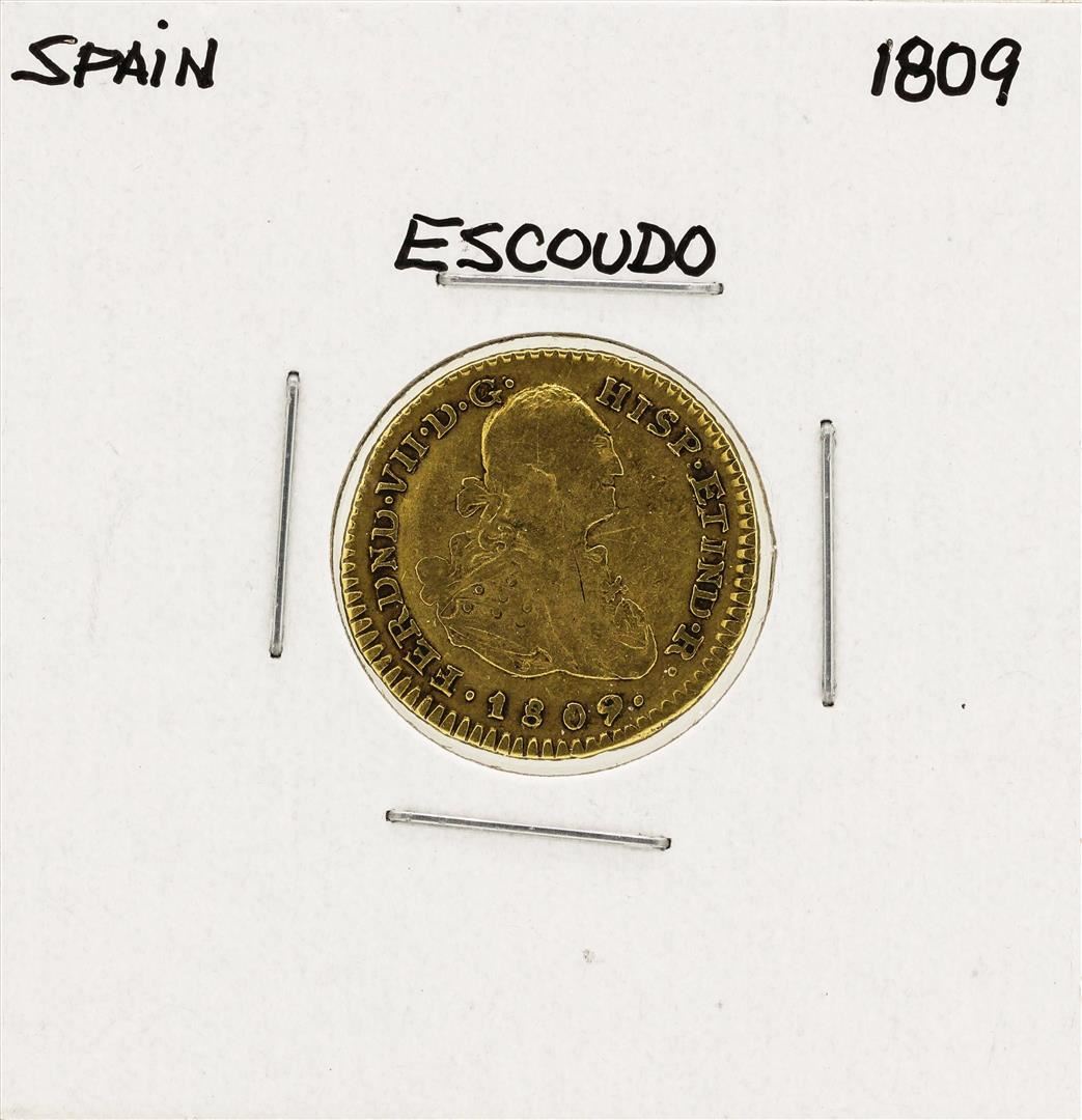 One 1809 Ferdinand VII Spanish Escudo Gold Coin.