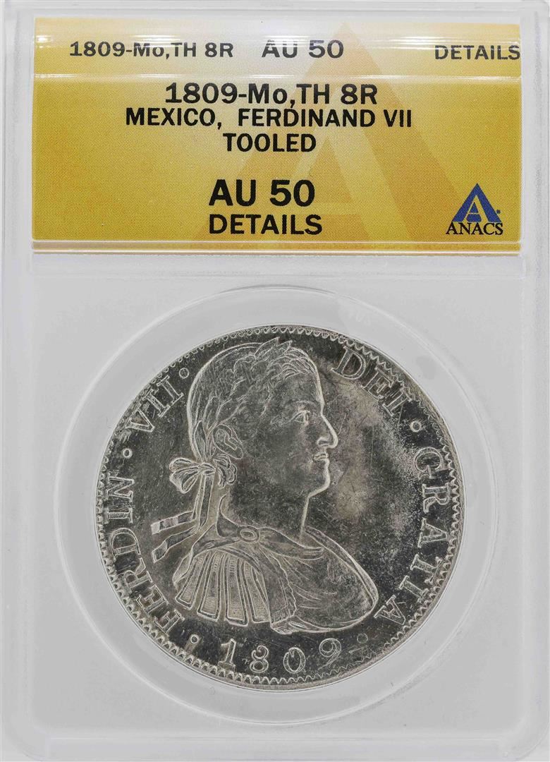One 1809-Mo Mexico Ferdinand VII 8 Reales Coin ANACS AU50 Details. ANACS Certified.