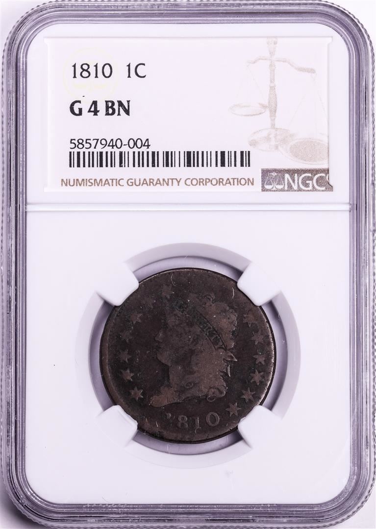 One 1810 Classic Head Large Cent Coin NGC G4BN. NGC Certified.