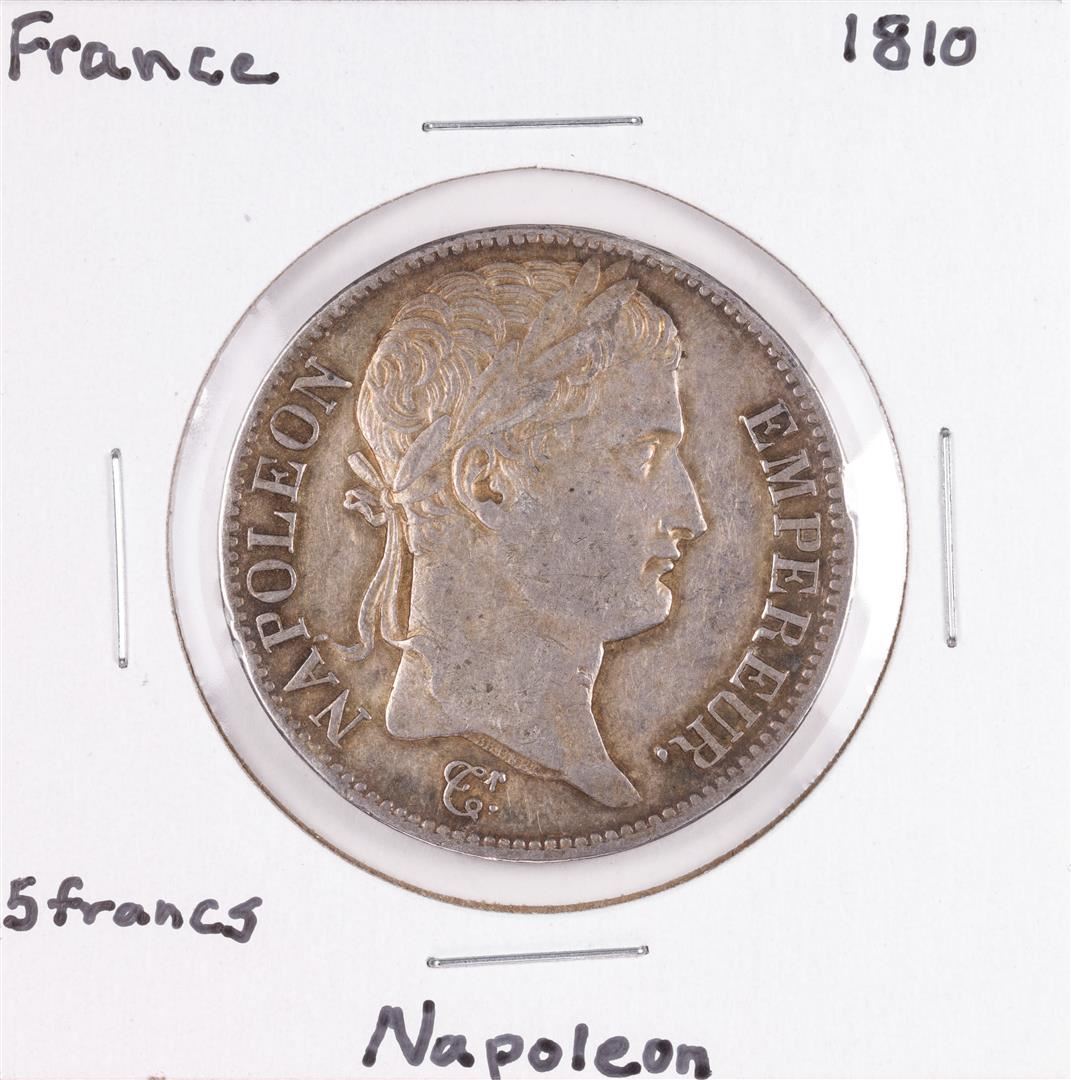 One 1810 France 5 Francs Napoleon Silver Coin.