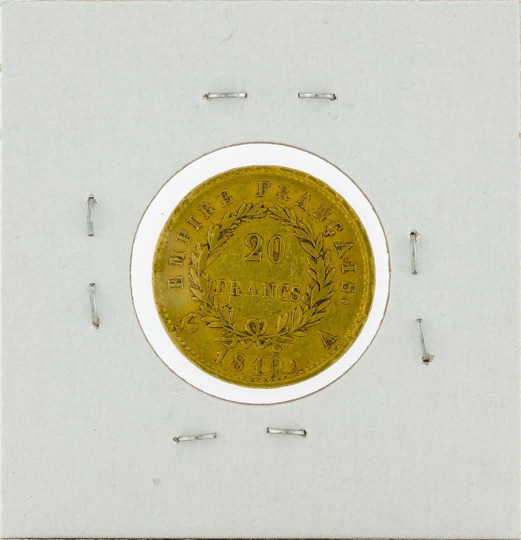 One 1810A French 20 Francs Gold Coin. Total weight of the coin is 0.1867 ounces.
