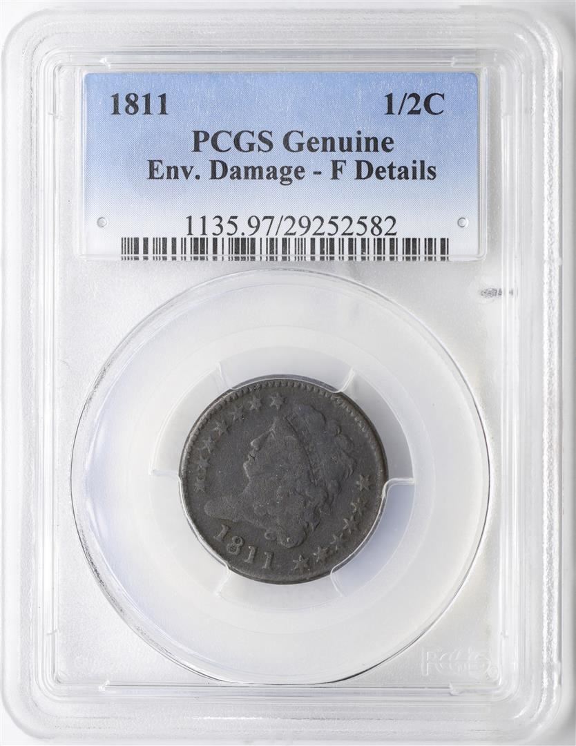 One 1811 Classic Head Half Cent Coin PCGS Genuine F Details. PCGS Graded.