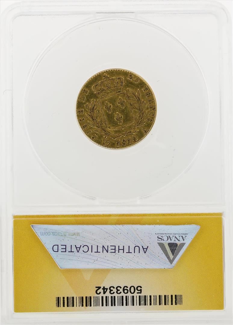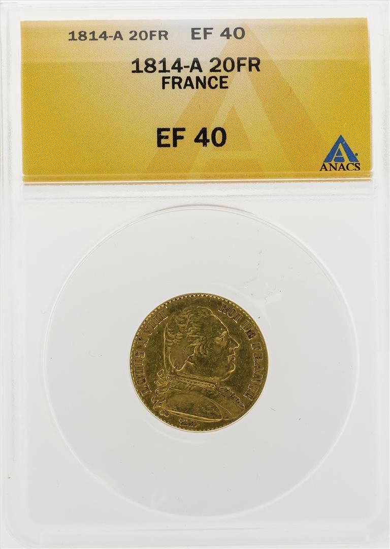 One 1814-A 20 Francs Gold Coin ANACS EF40. ANACS Certified.