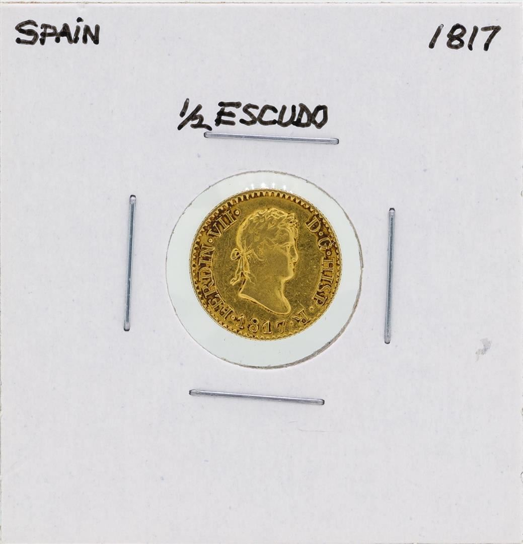 One 1817 Ferdinand VII Spanish 1/2 Escudos Gold Coin.