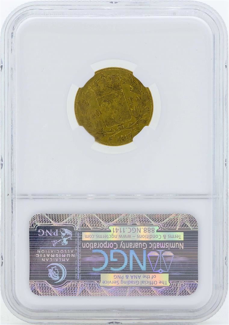 One 1817W France 20 Francs Gold Coin NGC AU50. NGC Certified.