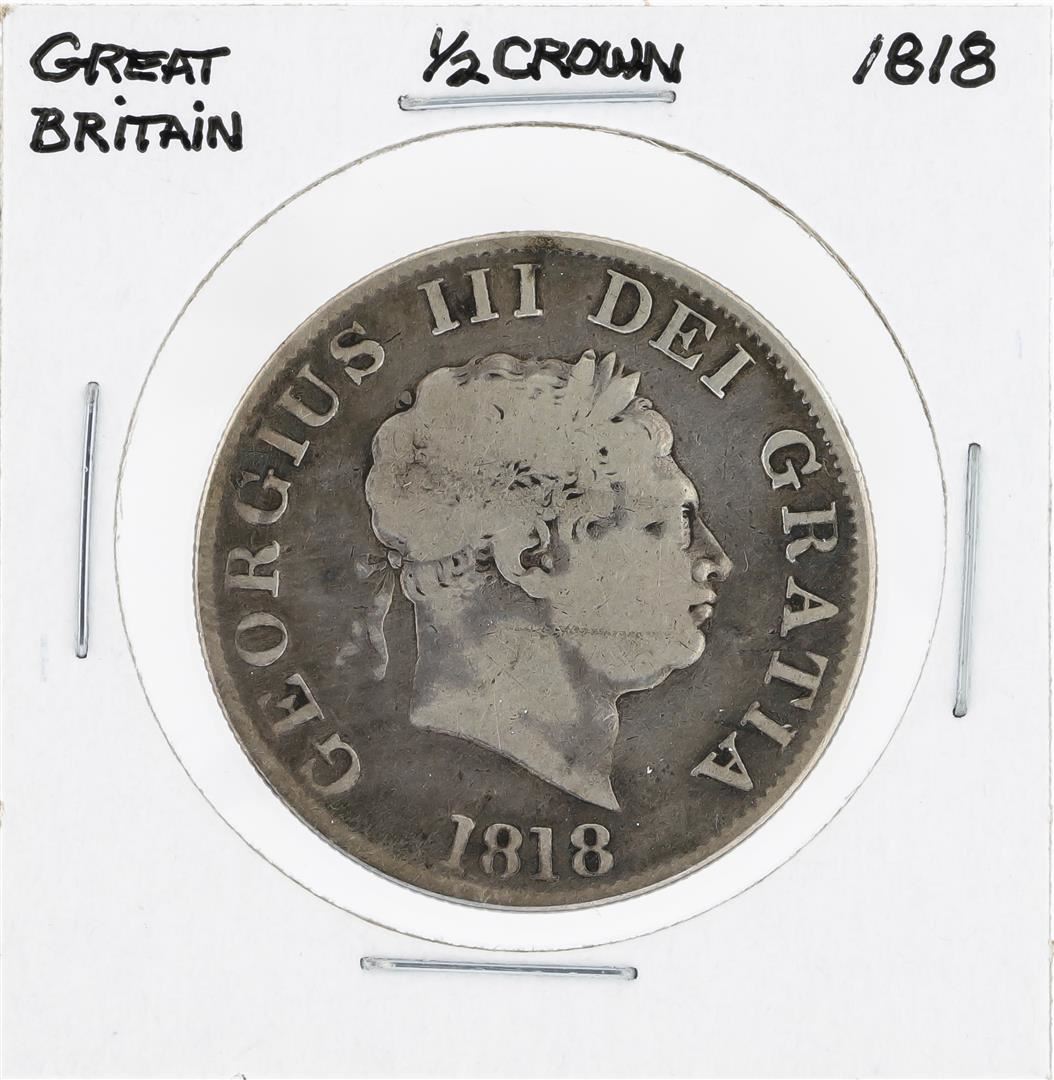 One 1818 Great Britain 1/2 Crown Silver Coin.