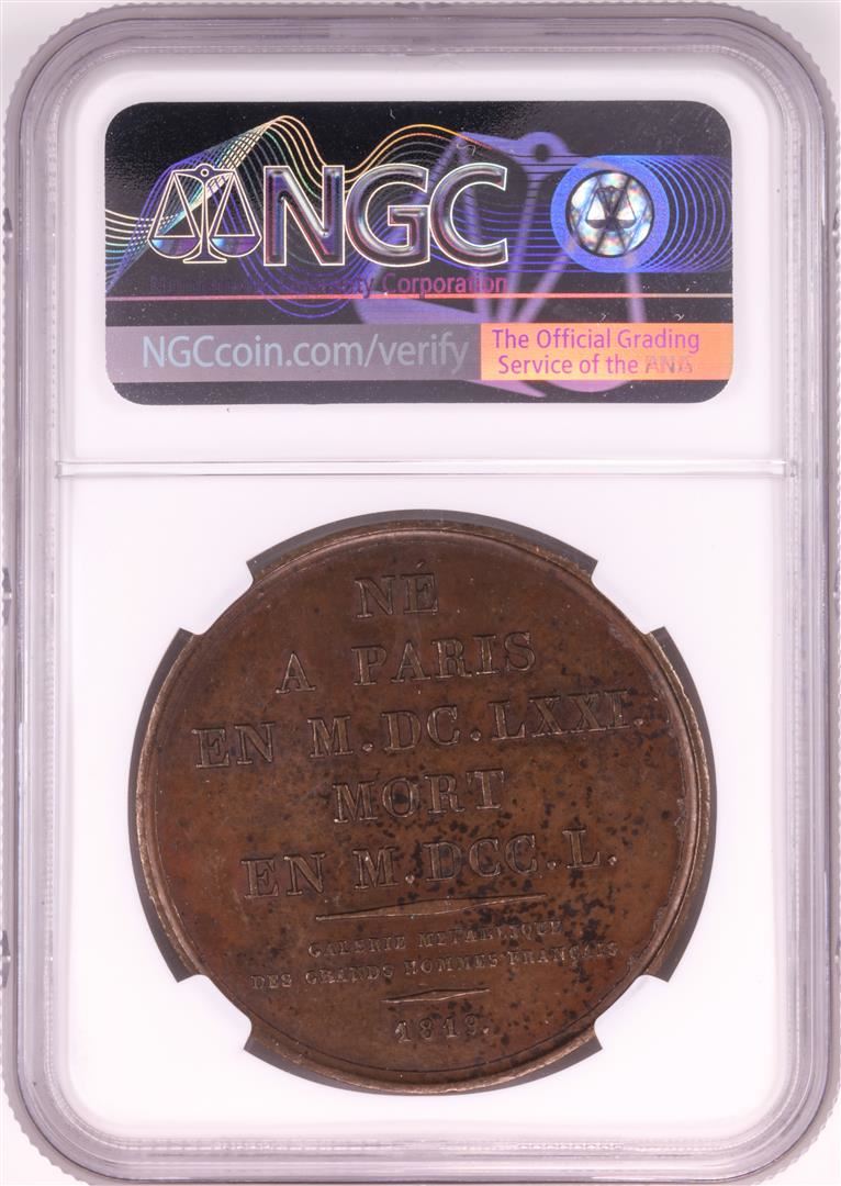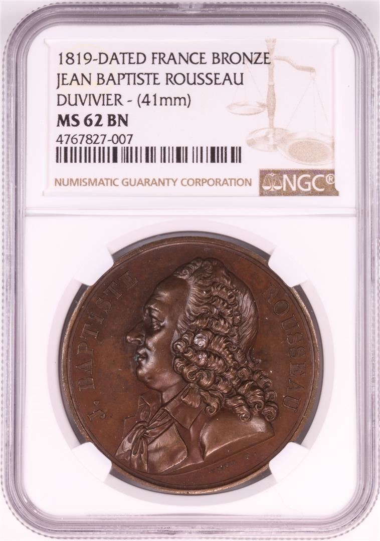 One 1819 France Bronze Jean Baptiste Rousseau Duvivier 41mm NGC MS62BN. NGC Certified.