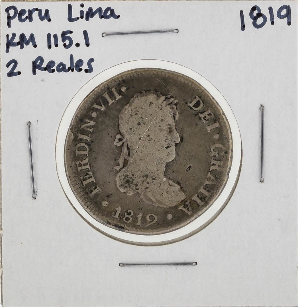 One 1819 Peru Lima 2 Reales KM115.1 Silver Coin.