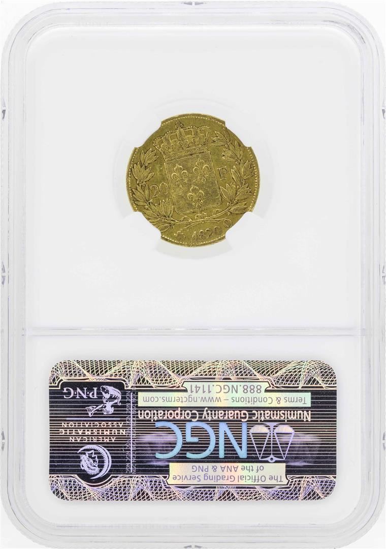 One 1820Q France 20 Francs Gold Coin NGC VF35. NGC Certified.