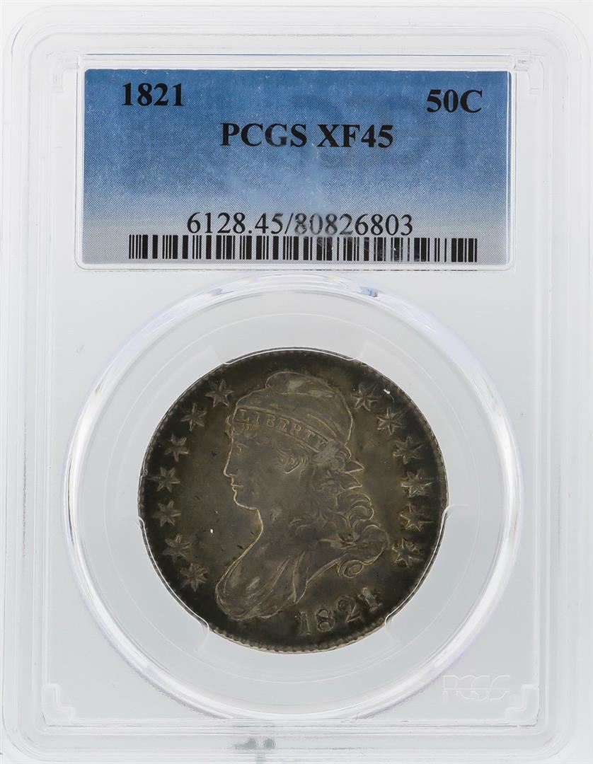 One 1821 Capped Bust Half Dollar Coin PCGS XF45. PCGS Graded.