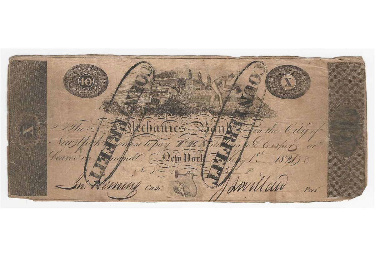 One 1821 The Mechanics Bank Counterfeit Obsolete Note.