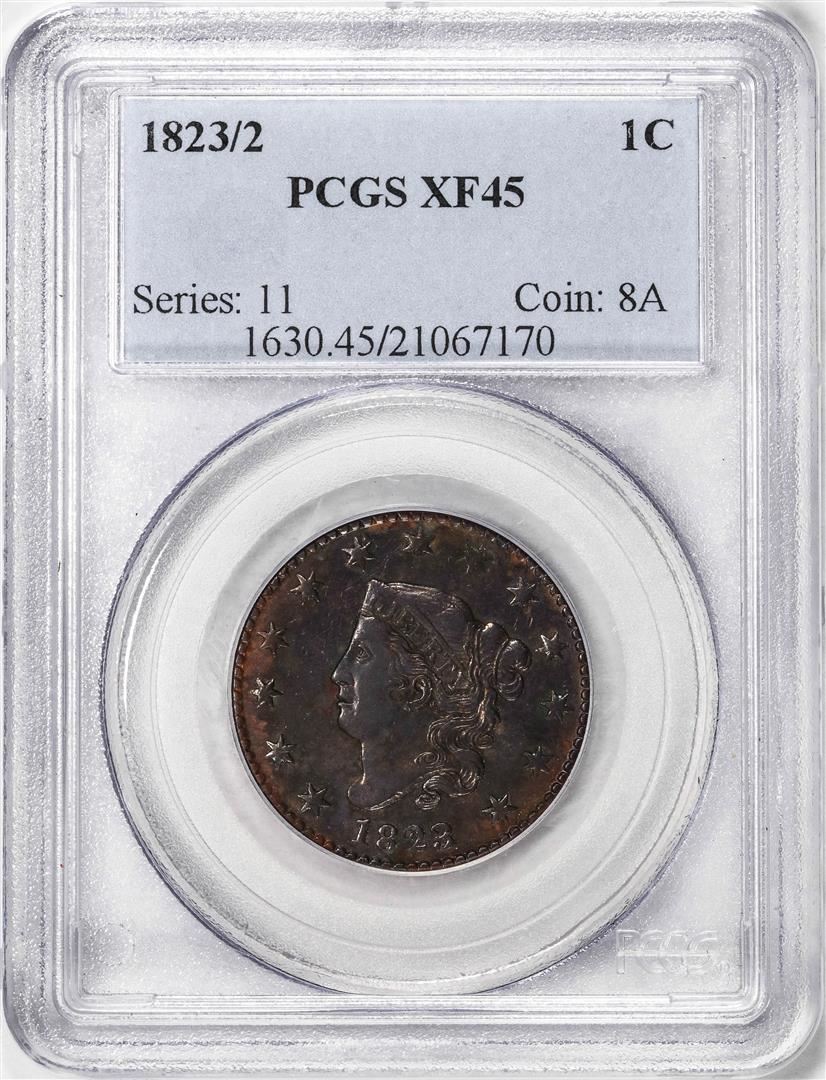 One 1823/2 Coronet Head Large Cent Coin PCGS XF45. PCGS Graded.