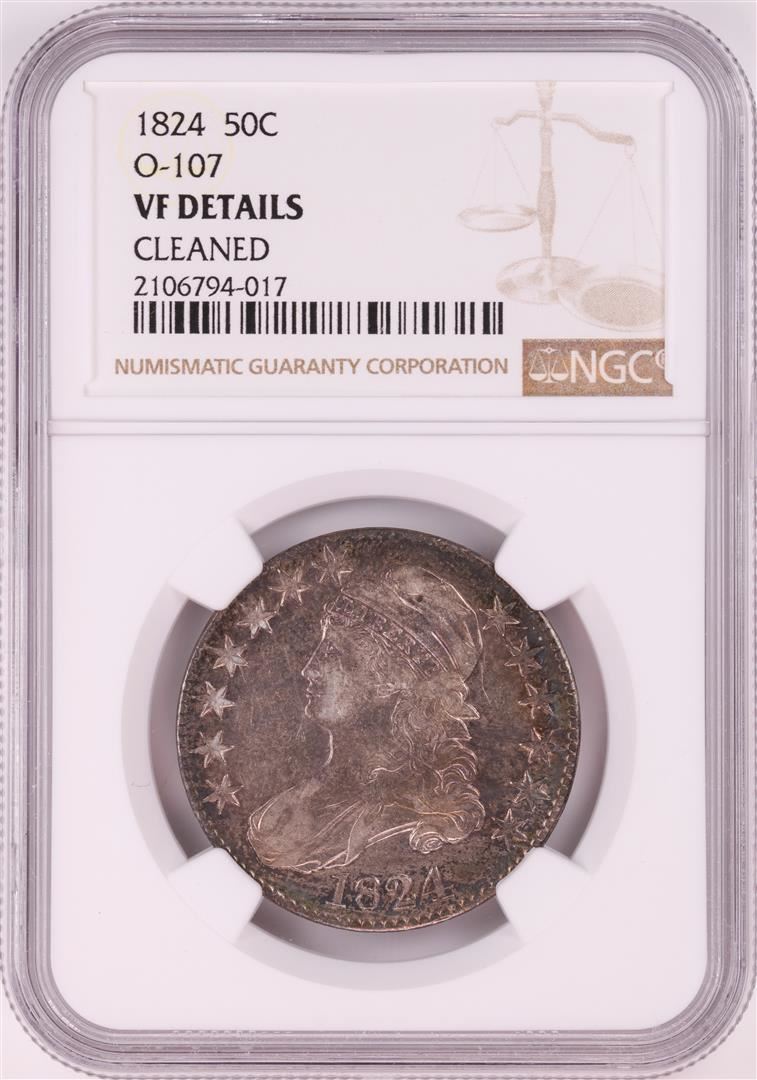 One 1824 Capped Bust Half Dollar Coin NGC VF Details O-107. NGC Certified.