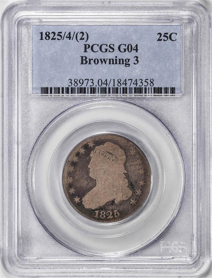One 1825/4/(2) Capped Bust Quarter Coin PCGS G04 Browning 3. PCGS Graded.