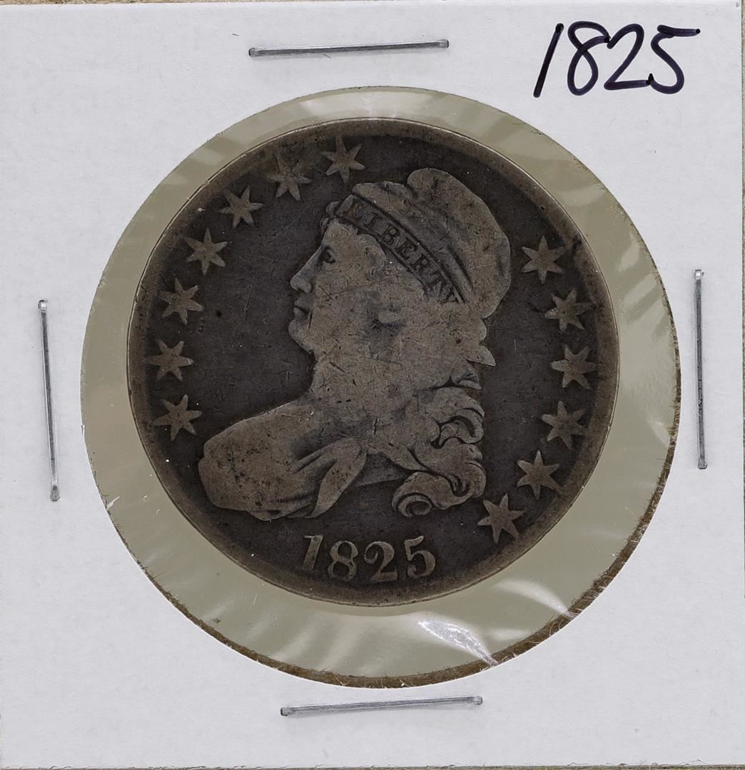 One 1825 Capped Bust Half Dollar Coin.