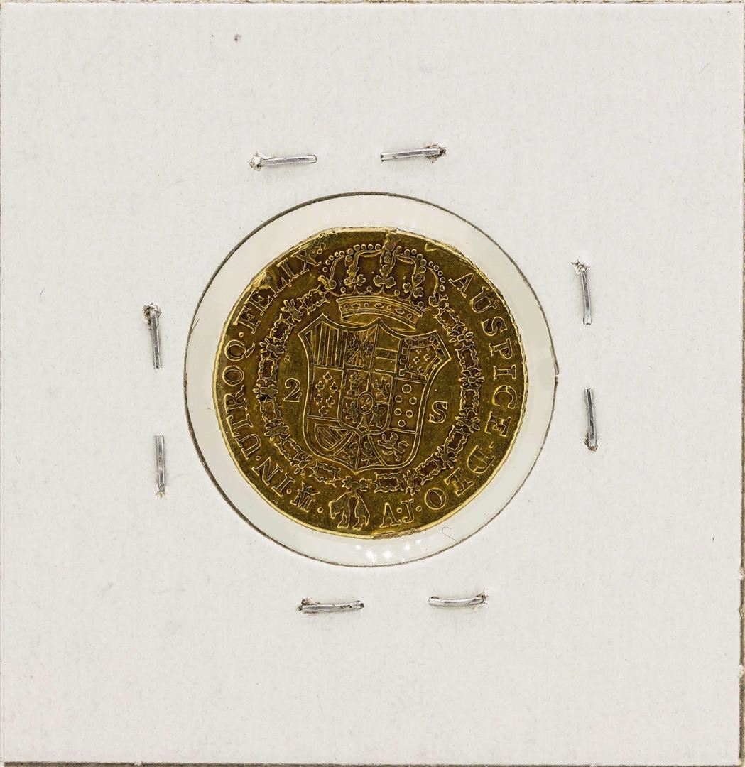 One 1825 Ferdinand VII Spanish 2 Escudos Gold Coin.