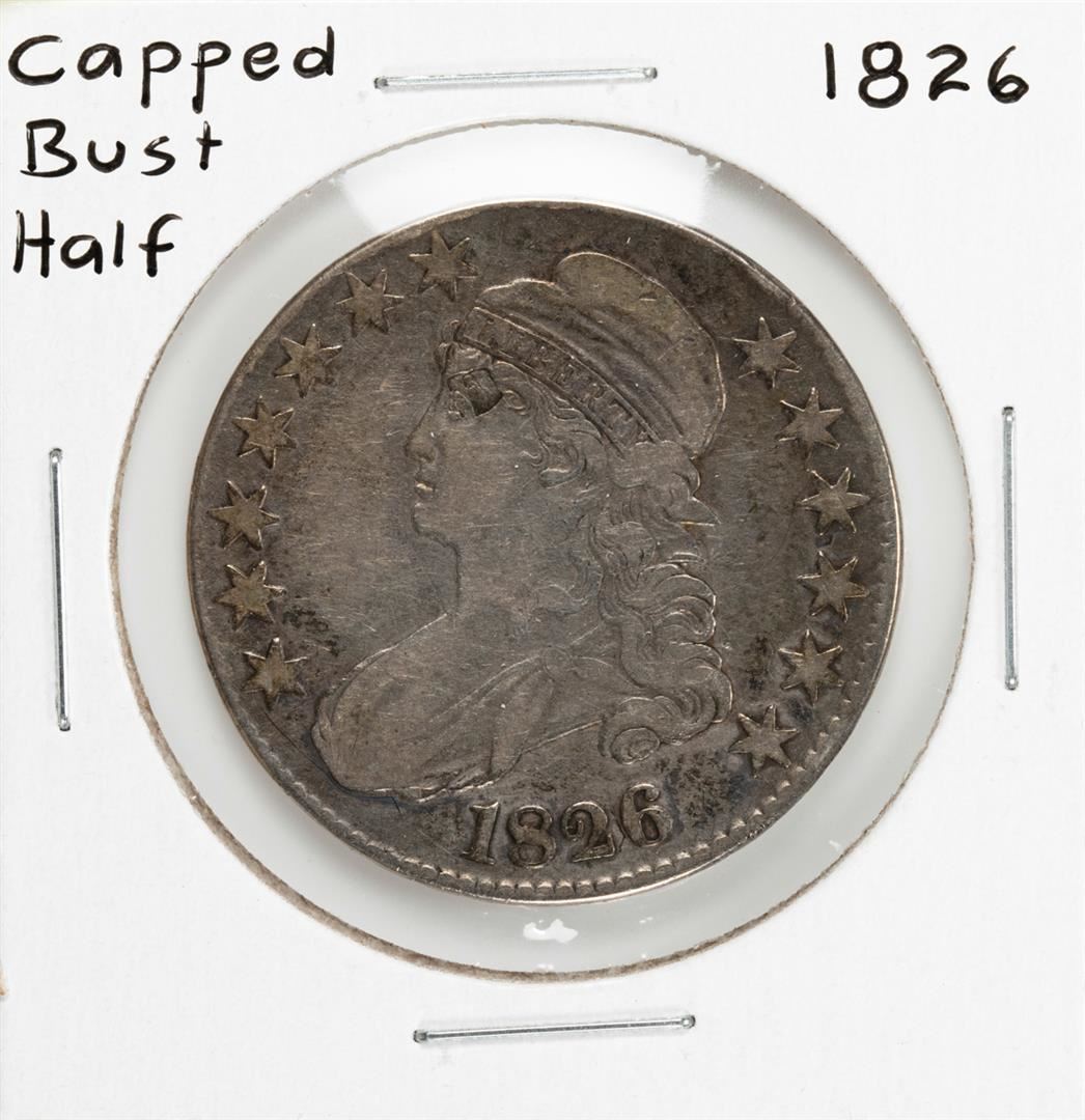 One 1826 Capped Bust Half Dollar Coin.