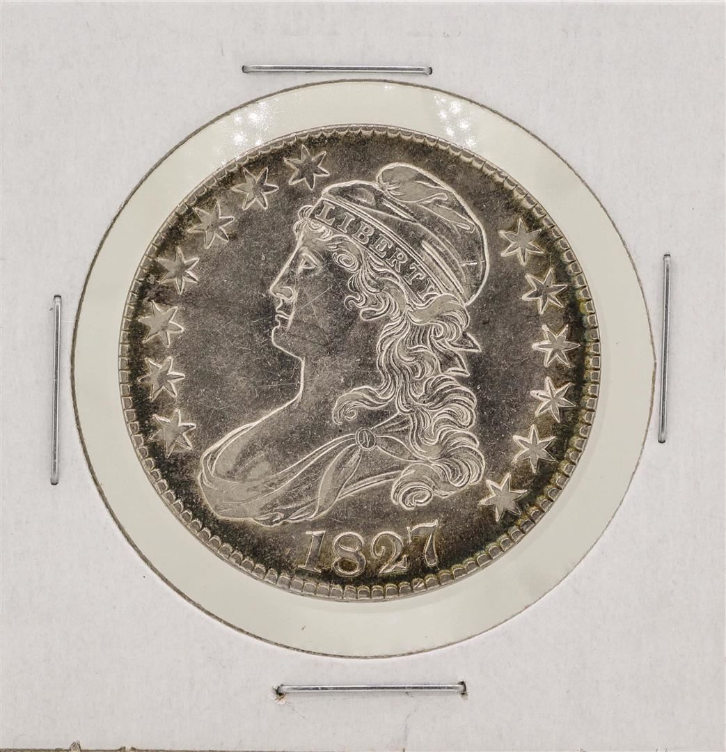 One 1827 Capped Bust Half Dollar Silver Coin.