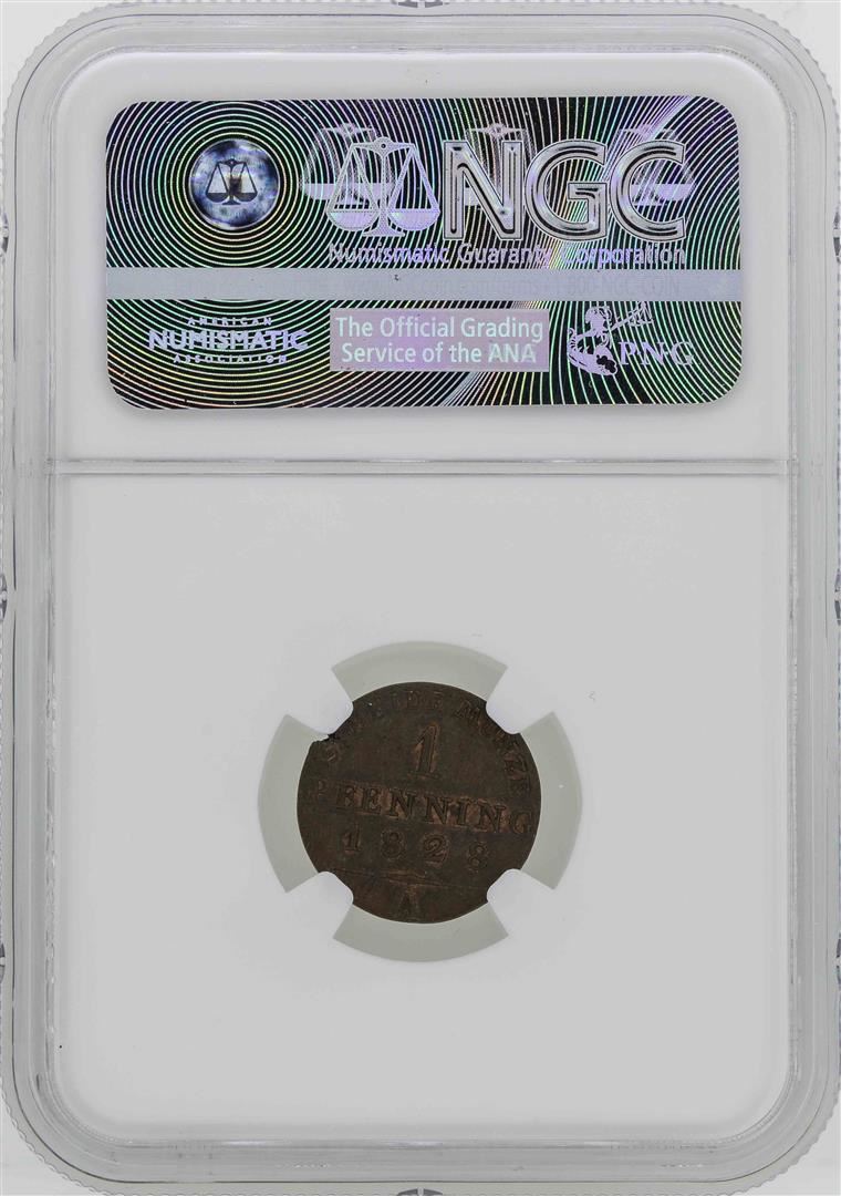 One 1828-A Germany-Prussia Friedrich Wilhelm II Pfenning Coin NGC MS62BN. NGC Certified.