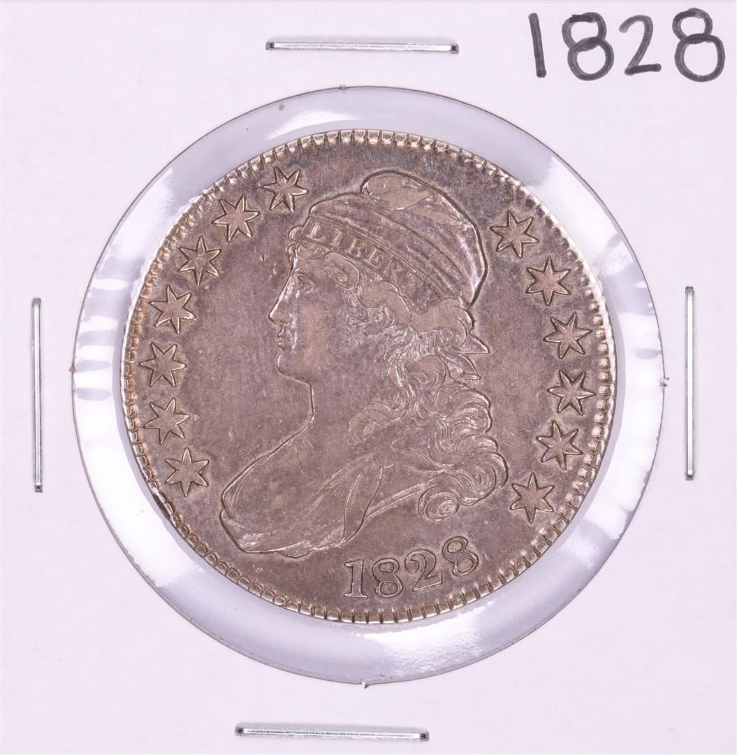 One 1828 Capped Bust Half Dollar Coin.
