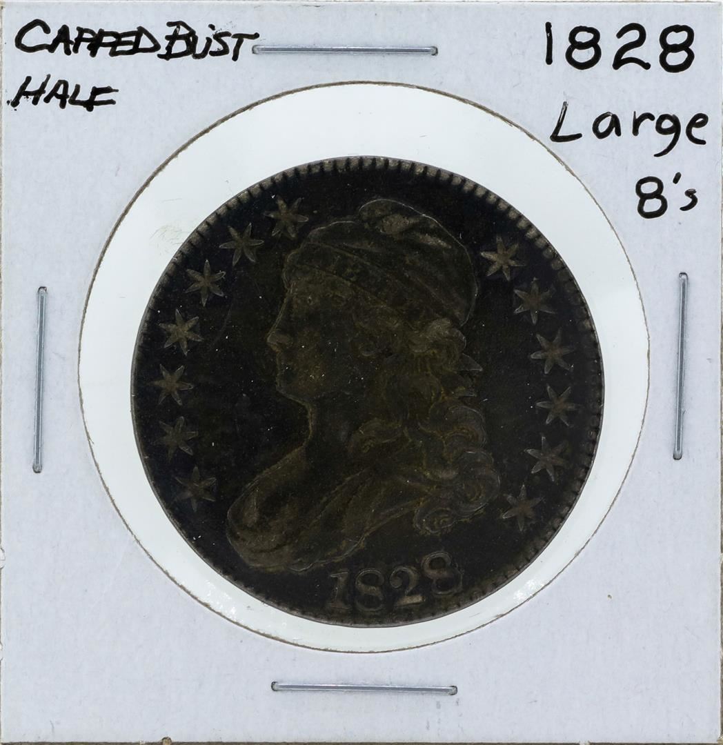 One 1828 Large 8's Capped Bust Half Dollar Coin.