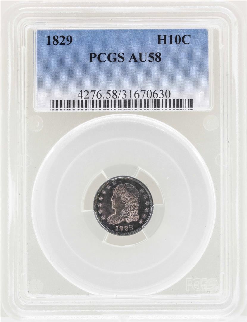 One 1829 Capped Bust Half Dime Coin PCGS AU58. PCGS Graded.