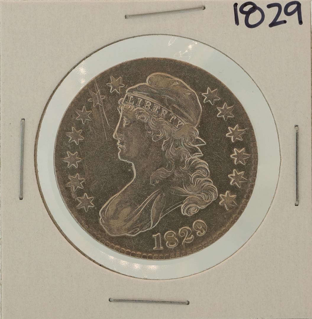 One 1829 Capped Bust Half Dollar Coin.