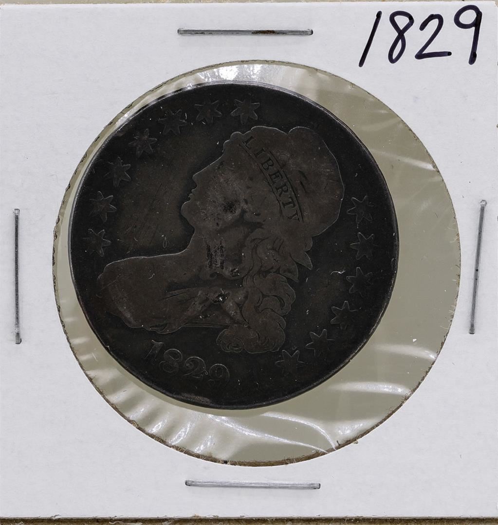 One 1829 Capped Bust Half Dollar Coin.