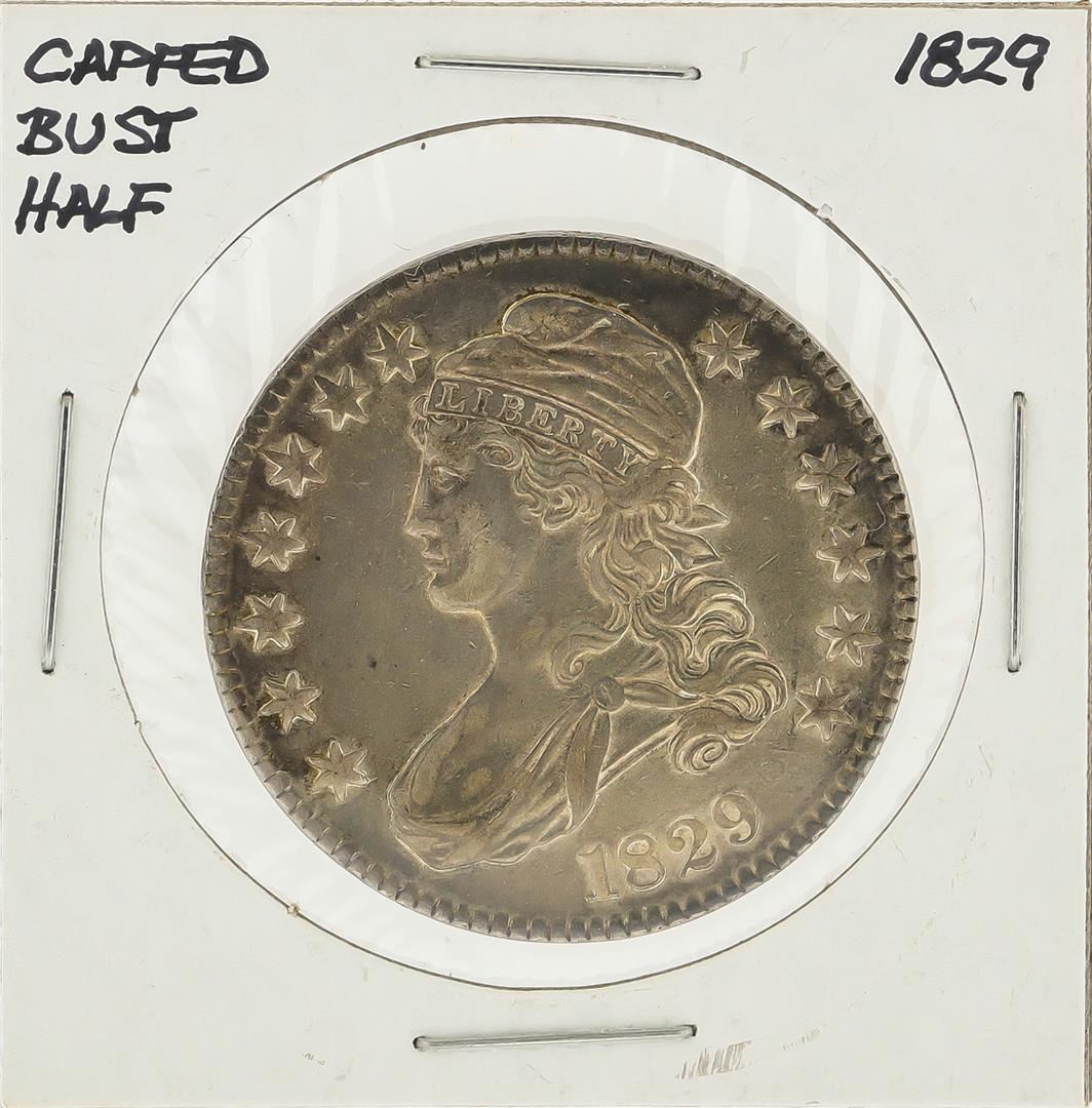 One 1829 Capped Bust Half Dollar Silver Coin.