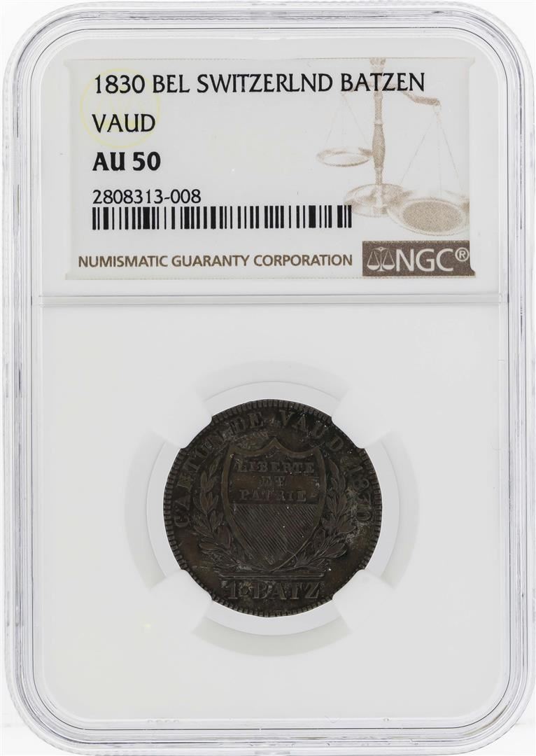One 1830 Bel Switzerland Batzen Vaud NGC AU50. NGC Certified.