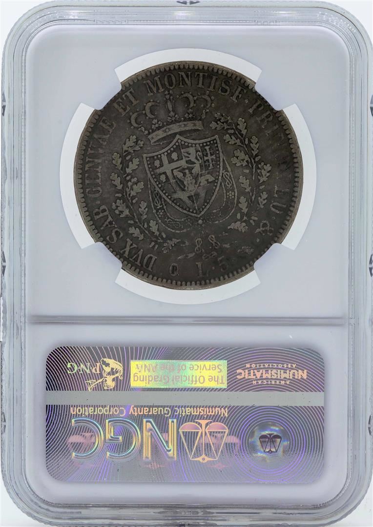 One 1830 Eagle Italy 5 Lira Sardina Silver Coin NGC VF25. NGC Certified.