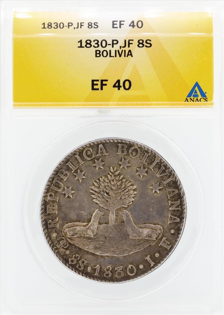 One 1830-P JF 8 Soles Bolivia Coin ANACS EF40. ANACS Certified.