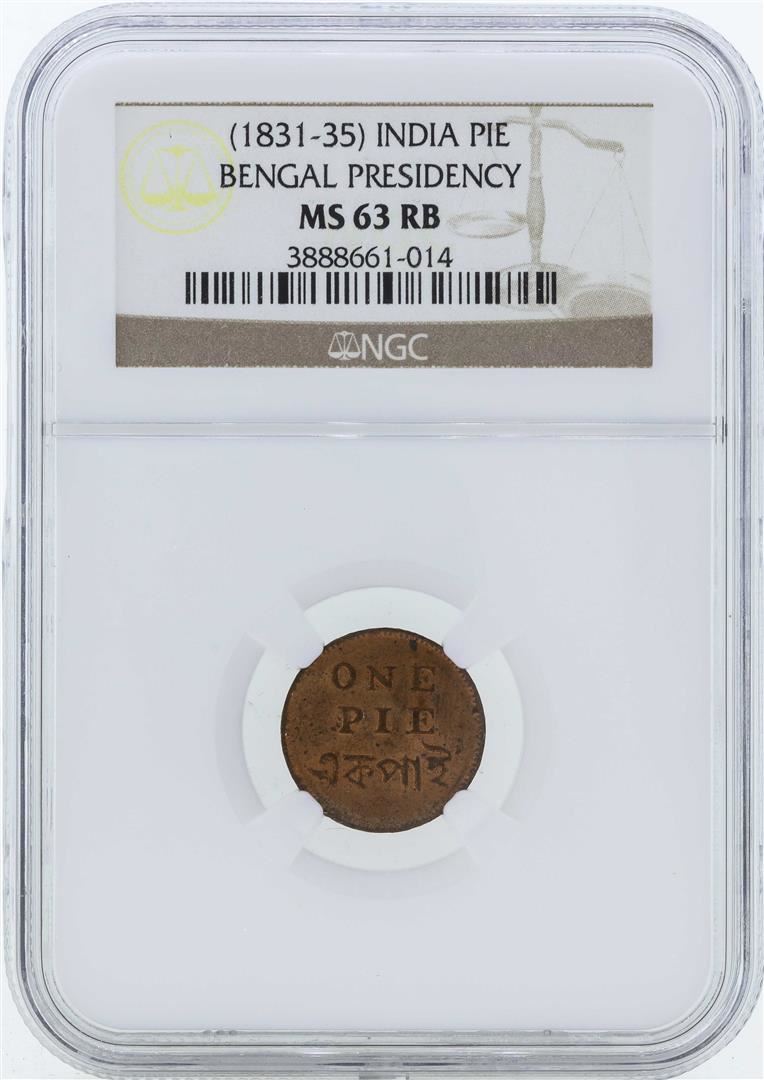 One 1831-35 India Pie Coin Bengal Presidency NGC MS63RB. NGC Certified.