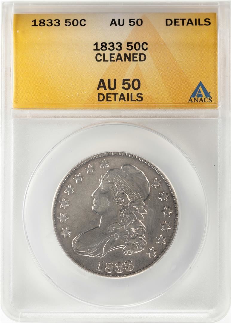 One 1833 Capped Bust Half Dollar Coin ANACS AU50 Details. ANACS Certified.