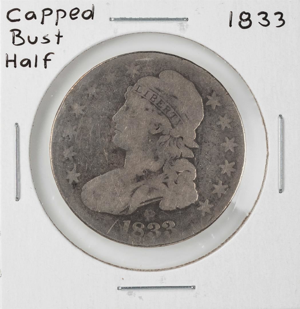 One 1833 Capped Bust Half Dollar Coin.