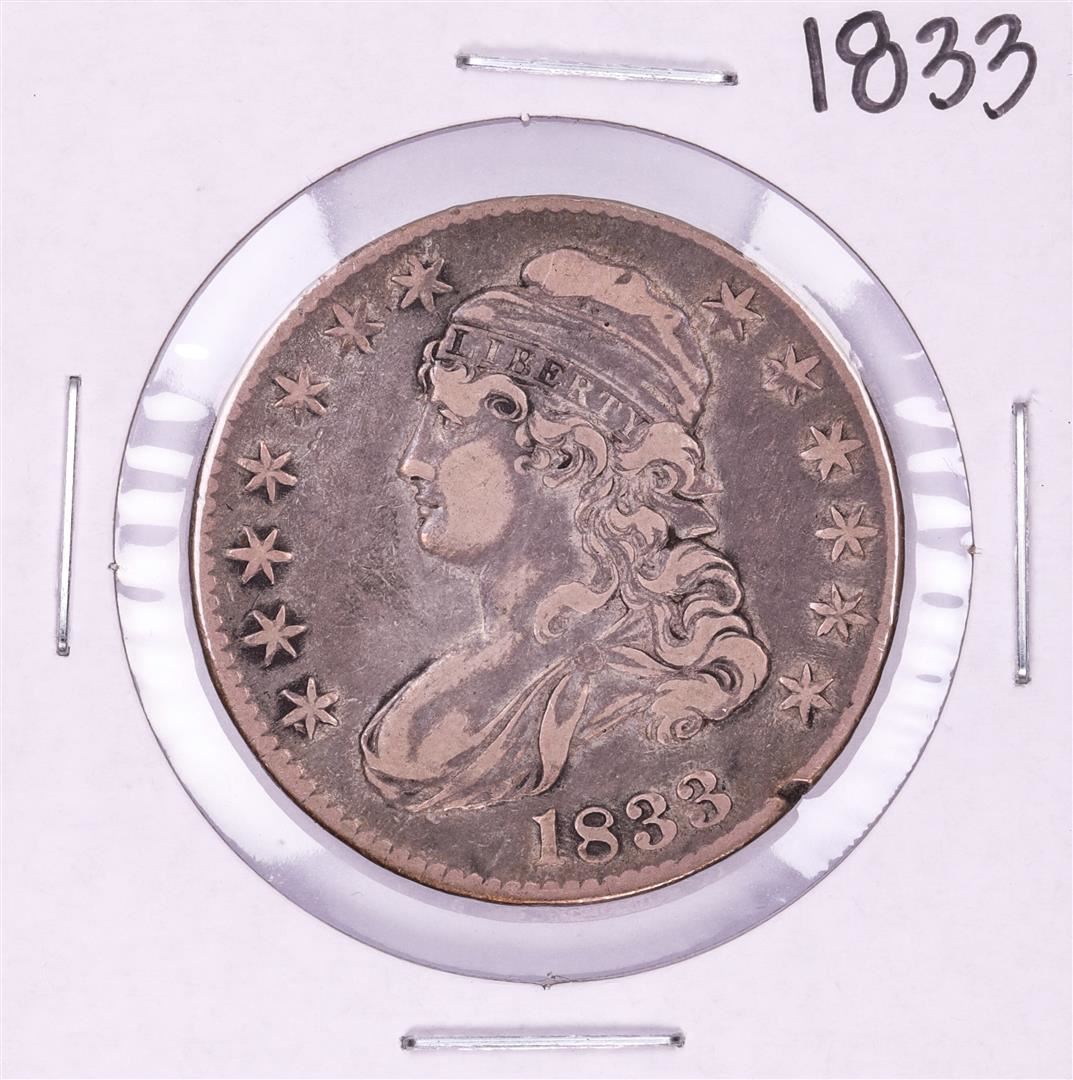 One 1833 Capped Bust Half Dollar Coin.