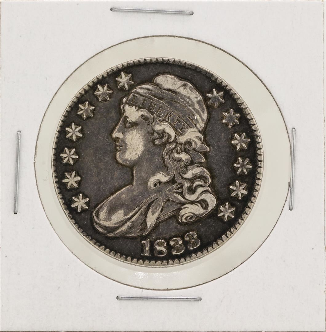 One 1833 Capped Bust Half Dollar Silver Coin.