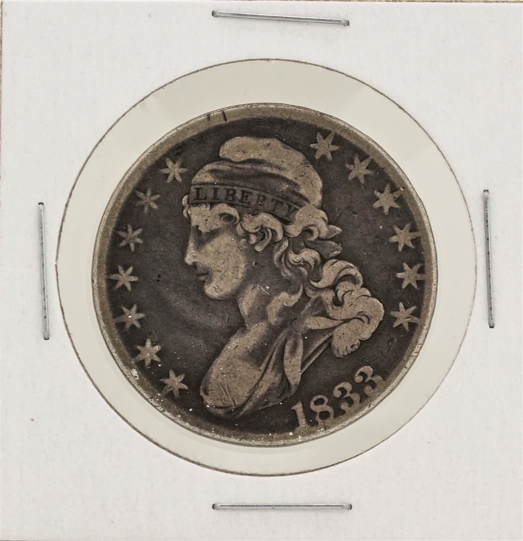 One 1833 Capped Bust Half Dollar Silver Coin.