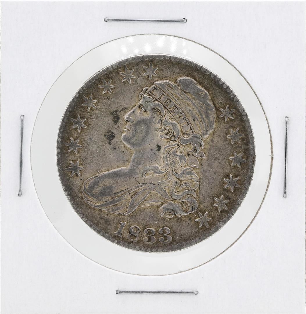 One 1833 Capped Bust Half Dollar Silver Coin.